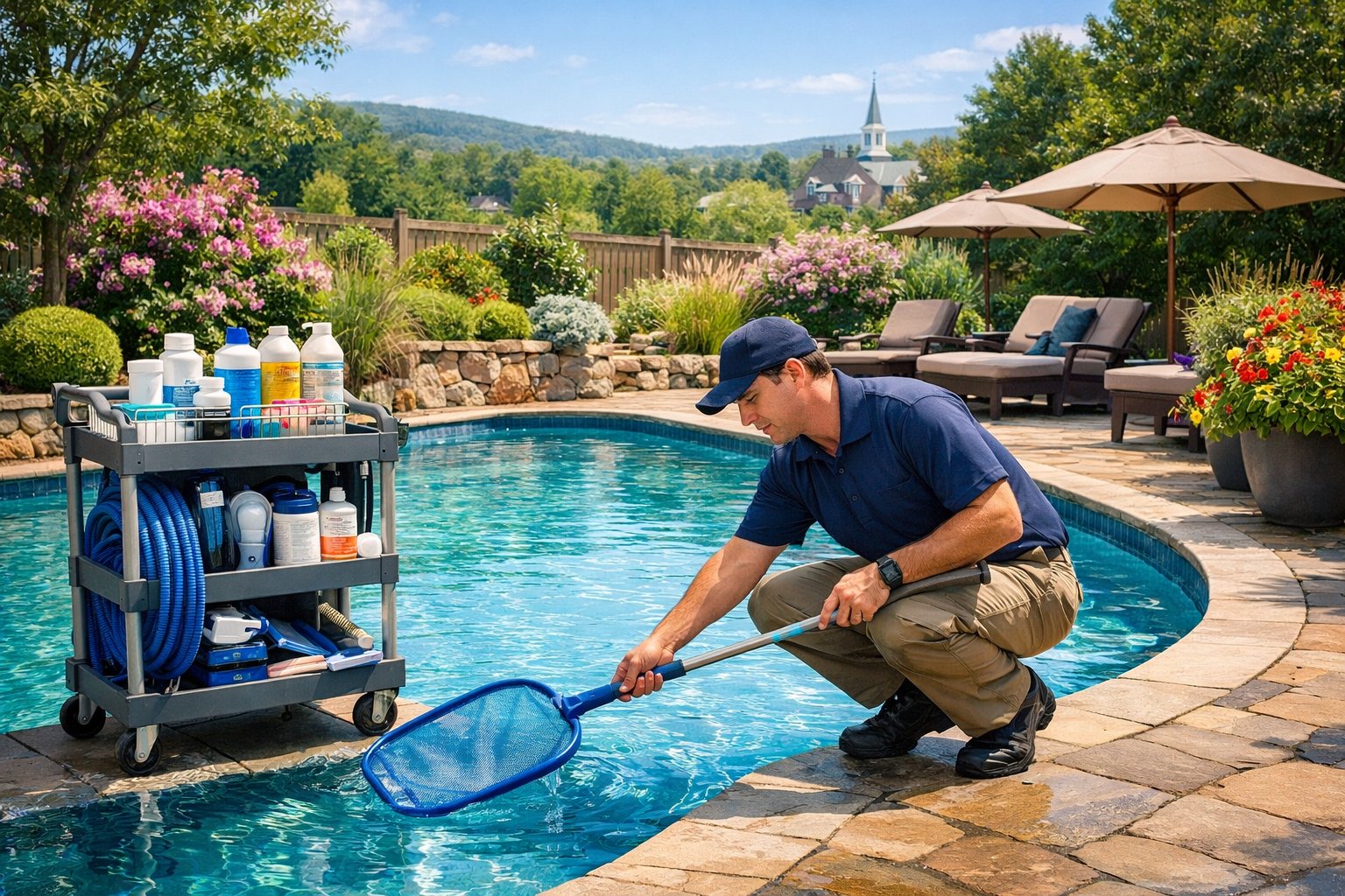 We recommend hiring a trusted local pro for weekly checks, chemical balancing, and equipment inspections so your pool stays swim-ready and hassle-free.